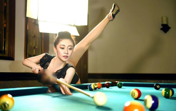 性感美女孫菲臺球桌上180度逆天一字馬 解鎖打球新姿勢(一)