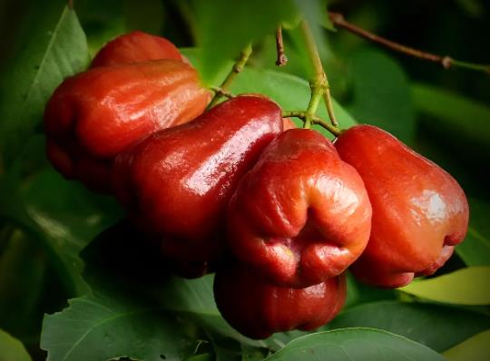 2、蓮霧的一個(gè)特性是顏色越深越甜,特別甜的蓮霧,紅紅的,很光滑,外加凹陷的頂端,越看越像辣椒。