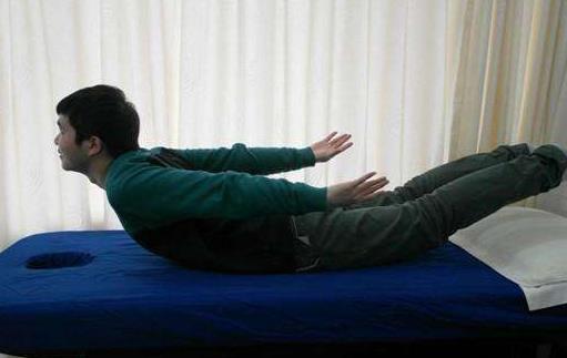 3、飛燕式練功:俯臥床上,雙臂放干身體兩側(cè),雙腿伸直,然后將頭,上肢和下肢用力向上抬起,不要使肘和膝關(guān)節(jié)屈曲,要始終保持伸直,如飛燕狀,反復(fù)鍛煉若干次。如果覺(jué)得這個(gè)動(dòng)作難度過(guò)大,也可以不抬起下肢。