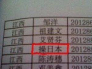 9月8日是南昌各大高校新生入學的日子,有網友在微博上爆料稱,“南昌一高校迎來一個叫“操日本”的新同學”,該微博已經發出迅速引起網友圍觀和膜拜。 江西一高校2012新生霸氣姓..