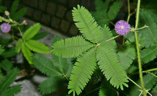 含羞草:為豆科多年生草本或亞灌木,由于葉子會對熱和光產生反應,受到外力觸碰會立即閉合,所以得名含羞草。