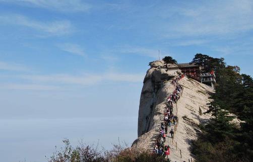 華山,古稱“西岳”,是我國著名的五岳之一,海拔2154.9米,位于陜西省西安以東120公里歷史文化故地渭南市的華陰市境內,北臨坦蕩的渭河平原和咆哮的黃河,南依秦嶺,是秦嶺支脈分水脊的北側的一座花崗巖山。憑借大自然風云變換的裝扮,華山的千姿萬態被有聲有色的勾畫出來,素有“奇險天下第一山”之稱。它的歷史衍化可追溯到1.2億年前,據《山海經》記載:“太華之山,削成而四方,其高五千仞,其廣十里。”