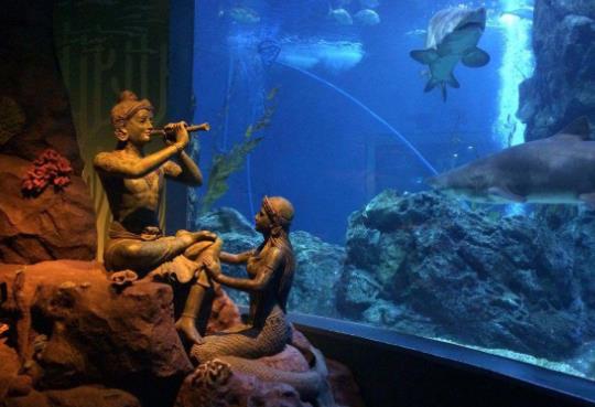 暹羅海底世界坐落于曼谷暹羅典范購物中心的地下一層和二層,于2005年開館,占地面積10000平方米,相當于兩個足球場那么大,容水量超過4百萬升,相當于3個奧運會游泳池,為東南亞最大的水族館,集娛樂和教育為一體,通過一系列的項目讓游客了解水棲動物的生活環境。