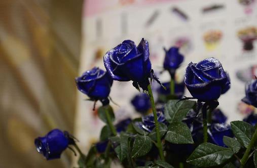 藍色妖姬是一種加工花卉,由月季和薔薇多種雜交及研制所得。它通常是用一種染色劑和助染劑調合成著色劑,將鮮花噴染成型,最早來自荷蘭。據花卉專家介紹,目前世界上極少有自然生長的藍色玫瑰花,現在市場上出售的“藍色妖姬”都是人工染色后的產物。