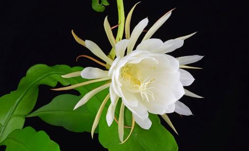 曇花是灌木狀主莖圓筒形,木質。分枝呈扁平葉狀,多具2棱,少具3翅,邊緣具波狀圓齒。刺座生于圓齒缺刻處。幼枝有刺毛狀刺,老枝無刺。夏秋季晚間開大型白色花,花漏斗狀,有芳香。原產墨西哥。喜溫暖濕潤和半陰環。