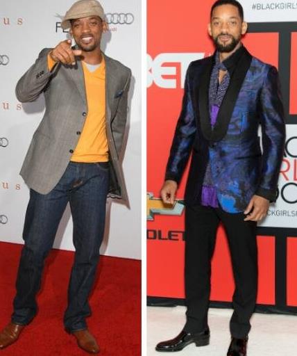 威爾史密斯過去常常穿著寬松的牛仔褲,長袖華麗的圖案襯衫和不匹配的服裝。但是他還是一直努力嘗試不同的東西,不過意外的是,不管他身上穿的是什么,他看上去總是十分優雅迷人的。