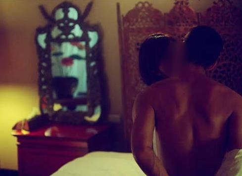 《婚前試愛》只中穿著胸罩的周秀娜與赤裸的羅仲謙在床上肉搏,從肚臍親吻到背部。