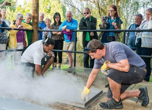 Hāngi是毛利人的特色美食,在一個大坑里面放入各種各樣的食材,然后蓋上土之后就可以等食材熟了就可以吃了。