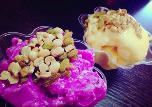 炒冰是三亞夏季最受歡迎的甜點之一。將水果榨成汁,混合煉乳,然后快速油炸成冰,再加入各種水果制成。不僅味道甜美,還特別解渴。