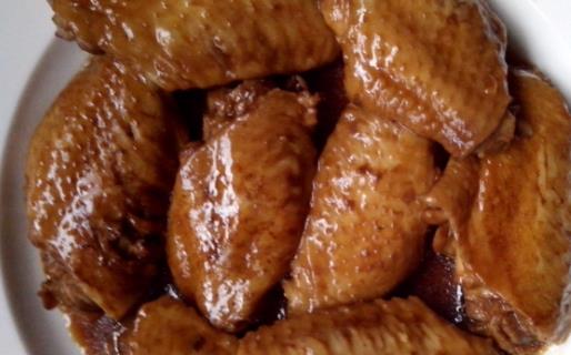 2、蔥切長段,姜切片,鍋內放油燒熱,蔥姜略炒,加入冰糖汁、紅葡萄酒、鹽、花椒,燒沸后放入雞翅,用小火慢慢煨約1小時,待汁濃肉熟時,揀去蔥、姜,加入味精炒勻,起鍋裝盤即可。
