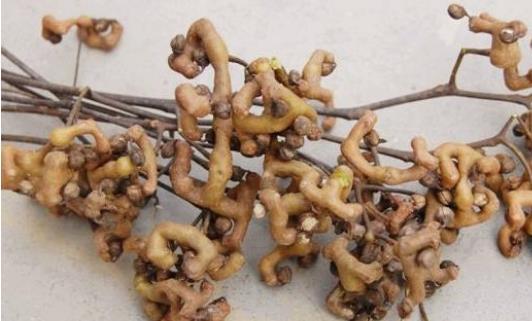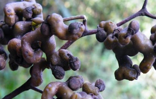 成熟的雞爪梨是黃褐色或棕褐的,果柄膨大呈肉質形狀,有分支,大多扭曲不規則,形似雞爪,放在嘴邊里一咬好像是有一種梨一樣的味道,大概是這種原因人們才會把這種果子,叫做雞爪梨。