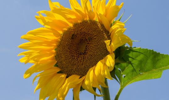 向日葵(拉丁文:Helianthus annuusL.),是菊科向日葵屬的一年生草本植物。高1~3.5米。莖直立,圓形多棱角,質硬被白色粗硬毛。廣卵形的葉片通;ド,先端銳突或漸尖,有基出3脈,邊緣具粗鋸齒,兩面粗糙,被毛,有長柄。頭狀花序,直徑10~30厘米,單生于莖頂或枝端。
