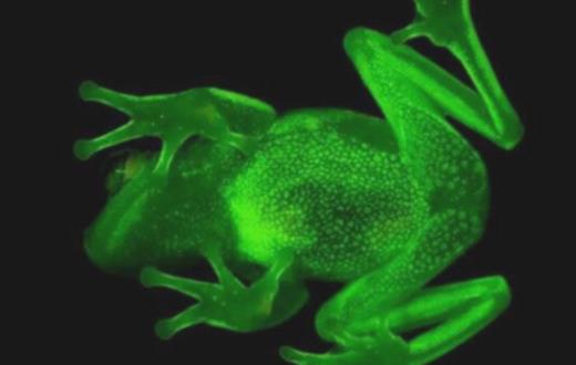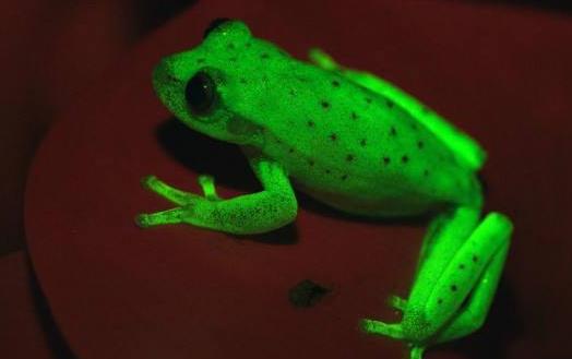 世界上第一種熒光蛙 南美圓點樹蛙折射光線發出熒光