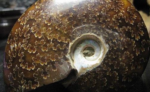鸚鵡螺(學名:Nautiloidea)是海洋軟體動物,共有2屬、6種,具卷曲的珍珠似外殼,外殼由許多腔室組成,外套位于外殼內(nèi)。各腔室之間有隔膜隔開;鰓2對;具63-94只腕,但無吸盤;眼簡單,無晶狀體;無墨囊。殼薄而輕,呈螺旋形盤卷,殼的表面呈白色或者乳白色,生長紋從殼的臍部輻射而出,平滑細密,多為紅褐色。整個螺旋形外殼光滑如圓盤狀,形似鸚鵡嘴,故此得名“鸚鵡螺”。