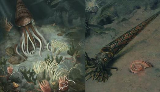 鸚鵡螺早在距今5億多年前的奧陶紀就出現(xiàn)了,它們雖然在地球上經(jīng)歷了數(shù)億年的演變,但是外形和習性等沒有發(fā)生太大的變化。在奧陶紀時期,鸚鵡螺的體型比現(xiàn)在要龐大許多,身長可達11米,憑借巨大的身軀、靈敏的嗅覺和強大的觸手,它們可以捕食三葉蟲和海蝎子等動物,幾乎是那個時代海洋無脊椎動物中的頂級掠食者。