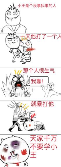 小王是個沒事兒找事兒的人,一天他打了一個人,那個人很生氣,我靠,就暴打他