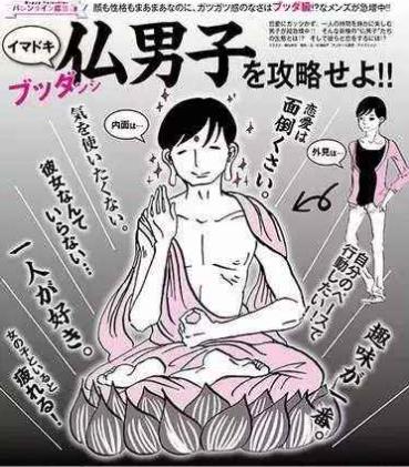 該詞最早出自2014年,日本某雜志介紹最近流行的一種男性新品種——“佛系男子”。他們外表看上去和普通人一樣,但內心往往具有以下特點:自己的興趣愛好永遠都放在第一位,基本上所有的事情都想按照自己喜歡的方式和節奏去做。總是嫌談戀愛太麻煩,不想在上面費神費時間,也不想交什么女朋友,就單純喜歡自己一個人,和女生在一起會感覺很累。