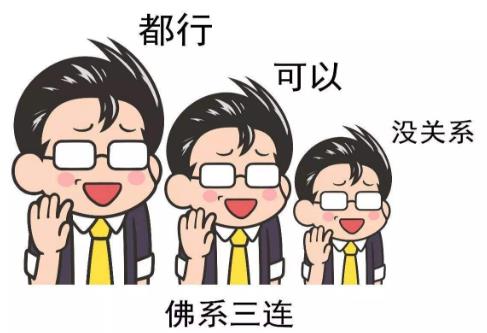 佛系的走紅在網上引發了一系列關于“系”類別的總結討論,佛系:都行,可以,沒關系。儒系:稍等,抱歉,對不起。法系:免談,不見,按規矩。道系:閉嘴,滾蛋,你麻痹。