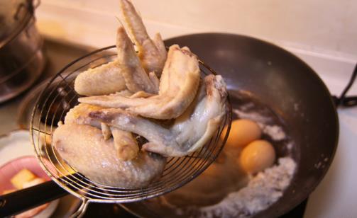 調料:精鹽300克,生抽1000克,魚露500克,冰糖、老抽各100克,雞精130克,糖色150克,花雕酒250克